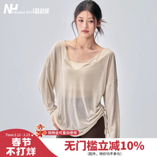 健身女孩宽松瑜伽服上衣休闲显瘦运动罩衫V领透气普拉提训练长袖