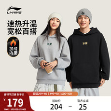 李宁加绒卫衣女冬季黑色长袖宽松保暖加厚上衣情侣装帽衫运动服男