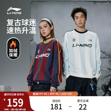 李宁加绒美式卫衣女冬季新款情侣长袖青少年保暖上衣男红色运动服