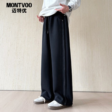 迈特优春季新款潮牌黑色直筒卫裤男生潮流宽松百搭痞帅休闲运动裤