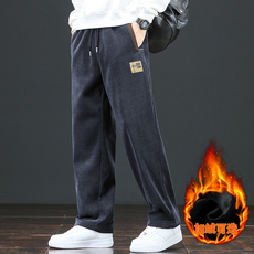 秋冬新款加绒加厚休闲裤男士宽松直筒裤子潮流百搭松紧腰运动卫裤