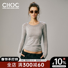 choc女孩运动长袖t恤速干健身服跑步瑜伽灰色短袖上衣修身卫衣秋