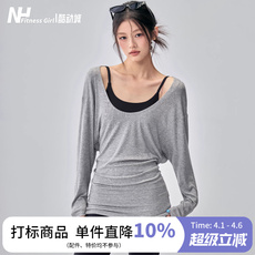 健身女孩大U领瑜伽服罩衫蝙蝠袖长款普拉提长袖宽松遮臀运动上衣