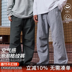 SLAMBLE女孩华夫格裤子廓形直筒运动休闲长裤针织百搭秋季新