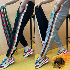 cleanfit条纹运动卫裤男秋季美式潮牌三条杠裤子显腿长宽松直筒裤