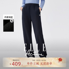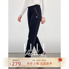 ELLE Active户外运动长裤修身显瘦休闲直筒裤女松紧腰抽绳裤子