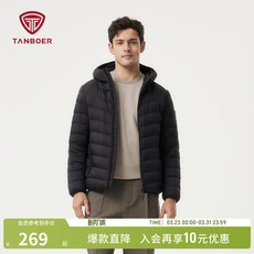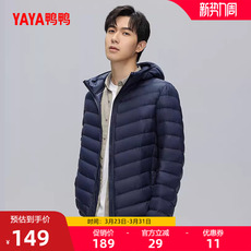 鸭鸭轻薄羽绒服男士2025年秋冬反季短款保暖休闲时尚连帽鸭绒外套