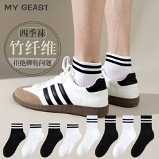 男士袜子长筒运动袜防臭白色高筒春秋季中厚纯棉青少年篮球袜中筒