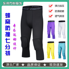 篮球运动紧身裤护膝男裤蜂窝防撞护膝一体七分裤打底压缩健身跑步
