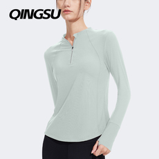 轻速长袖瑜伽服女快干衣半拉链健身服训练t恤跑步普拉提运动上衣