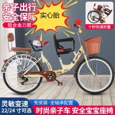 新款变速亲子车母子车22寸女式自行车带小孩宝24寸女士双人淑女车