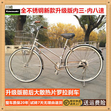 日本进口自行车川崎牌高碳钢双斜梁内三速内五速男女通用复古车子