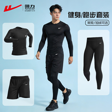 回力男士健身套装2026新款长袖速干高弹打底紧身衣跑步骑行训练服