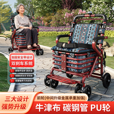 鱼跃轮椅H005老人折叠轻便软座手动代步车残疾人加宽手推车充气胎