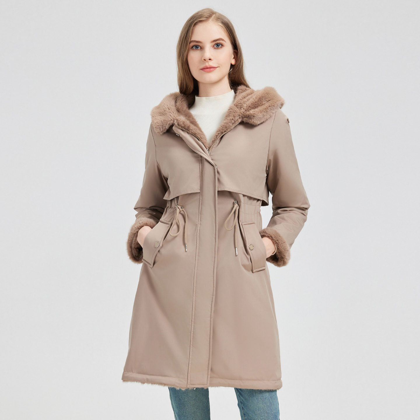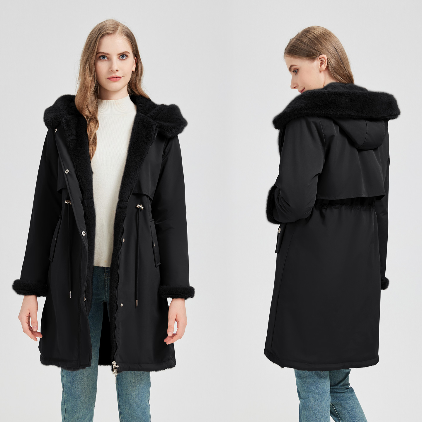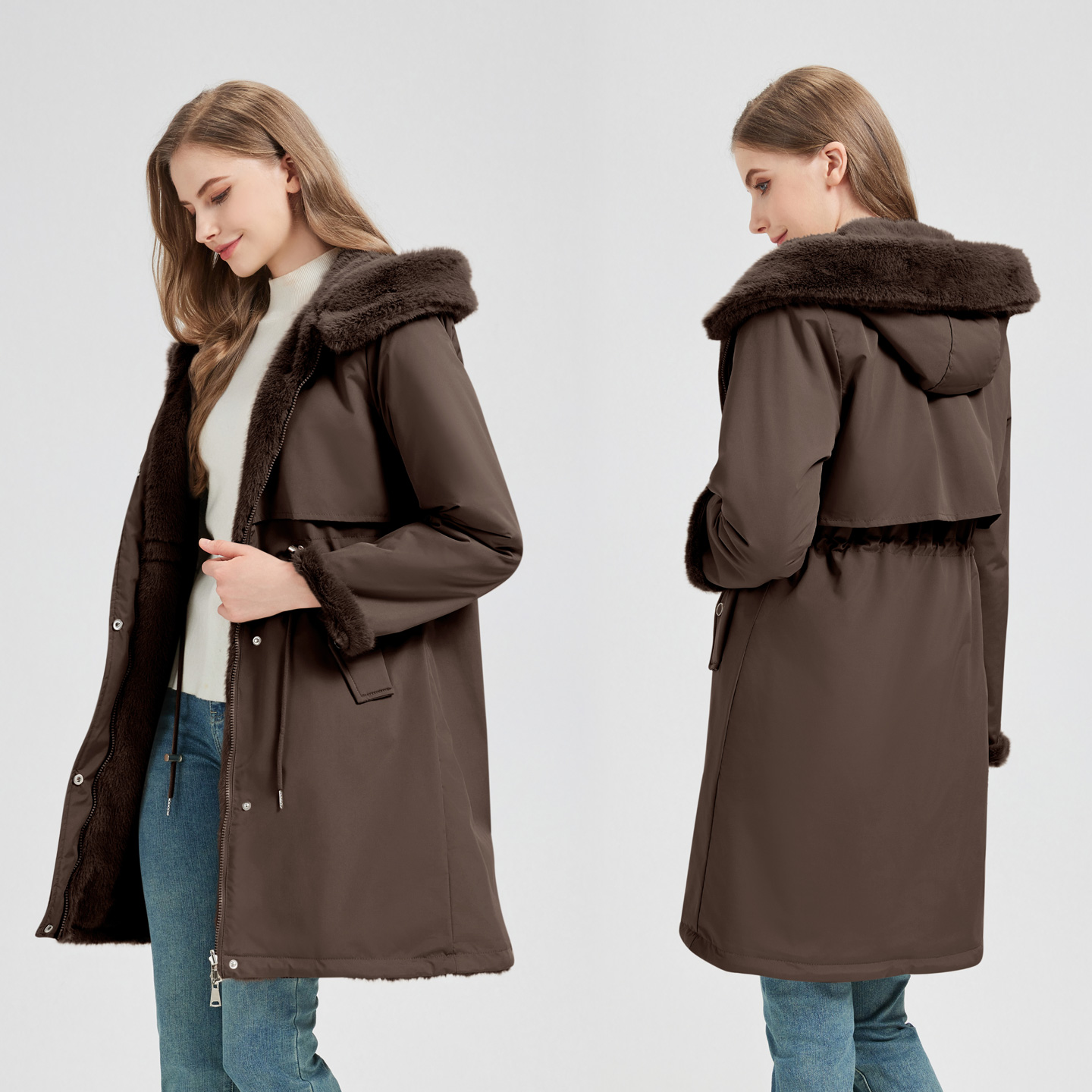 2025年冬季新款连帽可拆内胆棉衣外套女中长款过膝派克服棉服棉袄