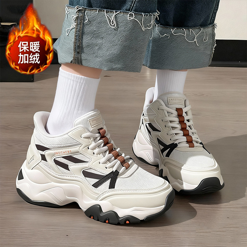 斯凯奇熊猫鞋女鞋2025冬季新款加绒保暖休闲鞋高帮运动鞋厚底棉鞋