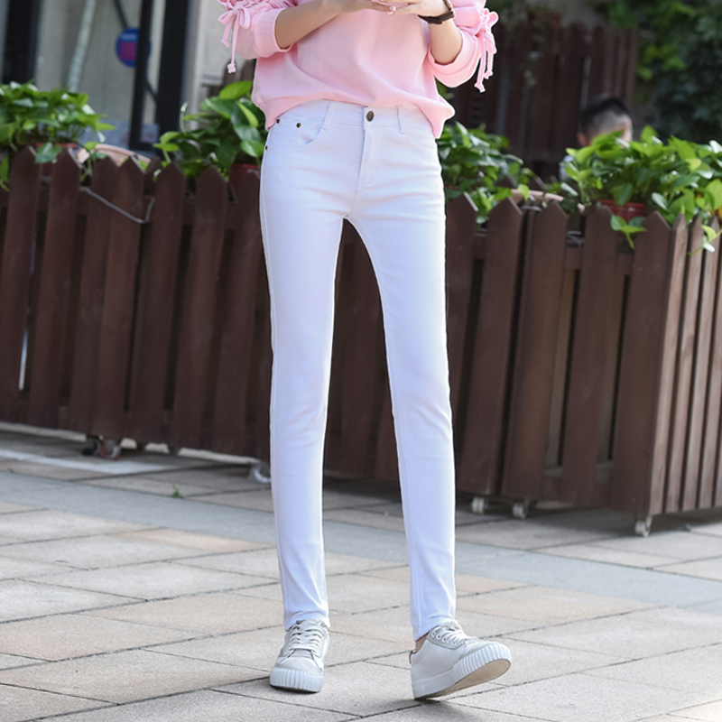白色小脚牛仔裤2025春夏牛仔裤女高腰显瘦通勤百搭棉质弹力牛仔裤