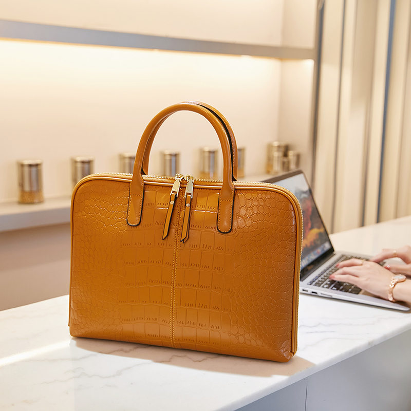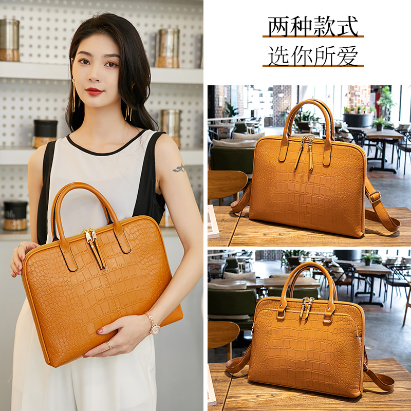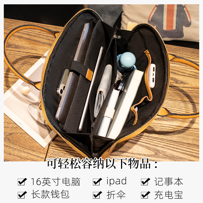 女笔记本真皮包2022新款高级通勤手提单肩包百搭商务女电脑公文包