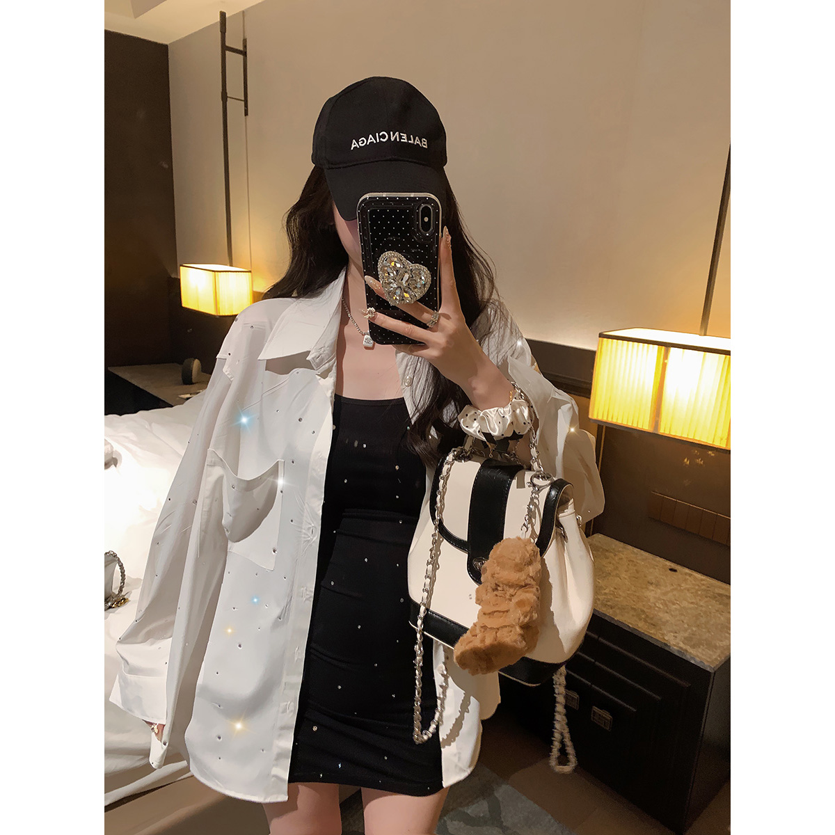 庄大泥 月光白 满钻2025早秋薄款长袖衬衫女