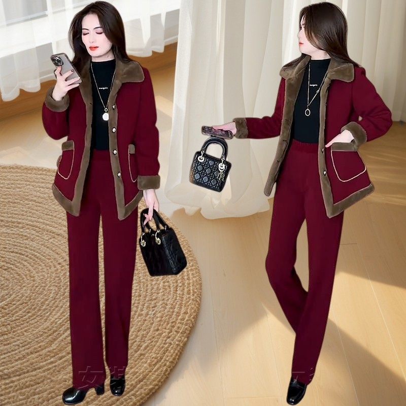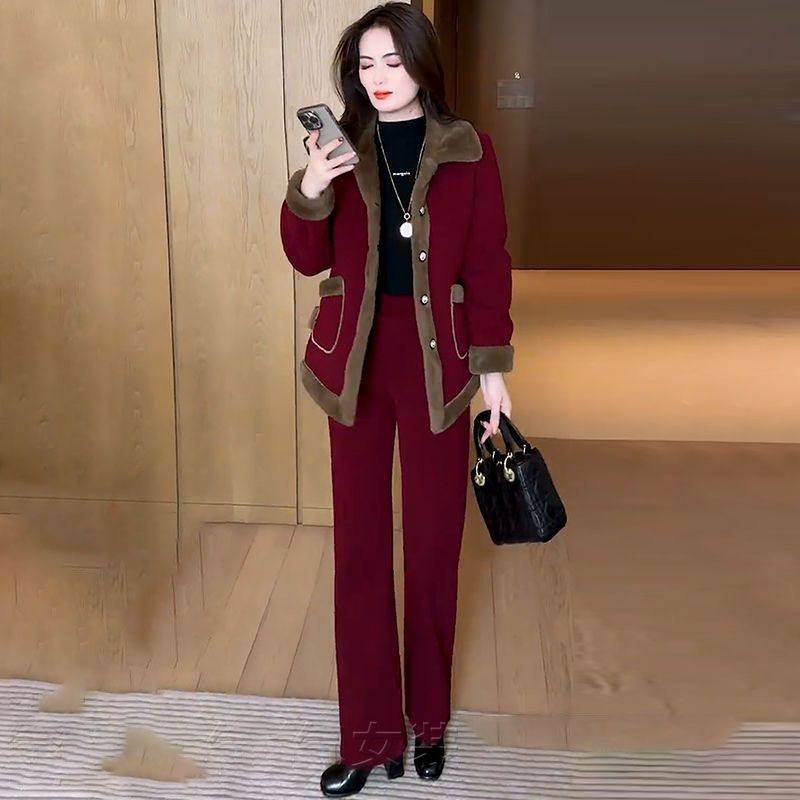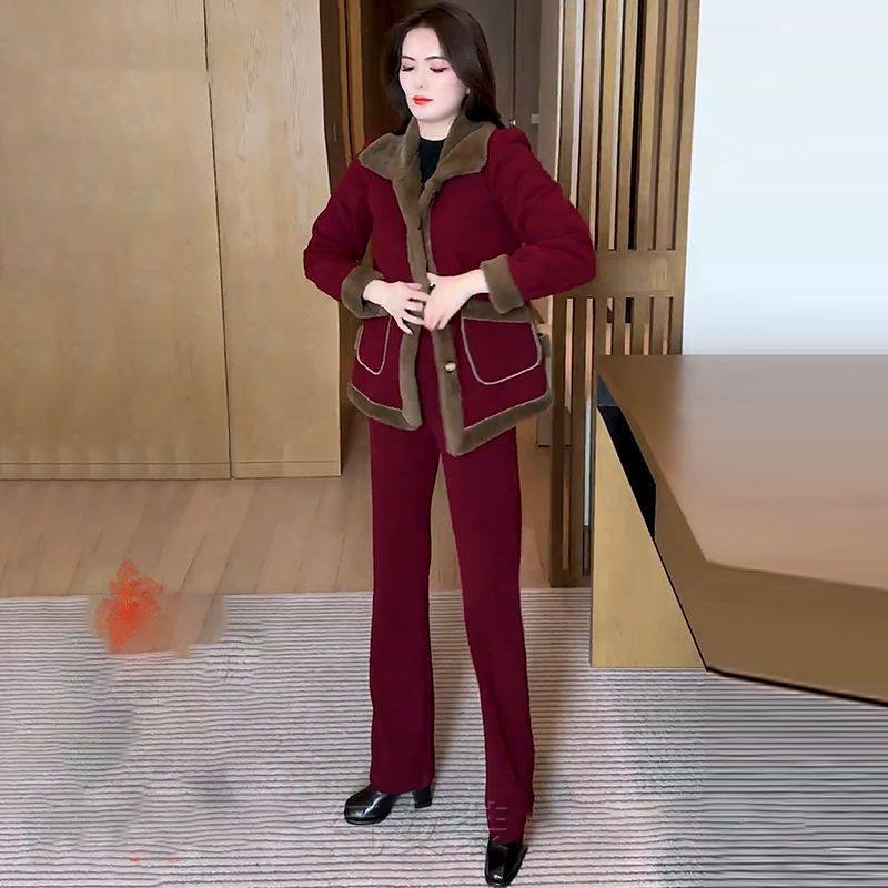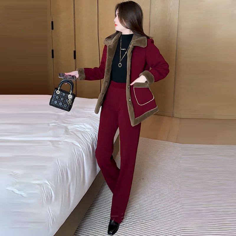 秋冬新款洋气外套直筒裤两件套潮名媛风高端加绒加厚时尚套装女