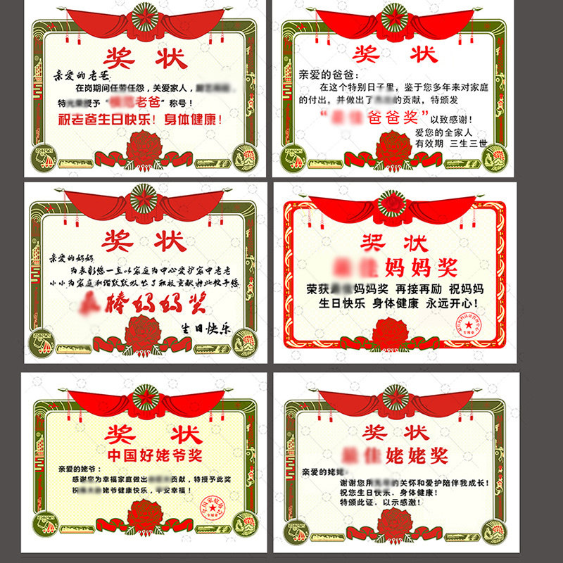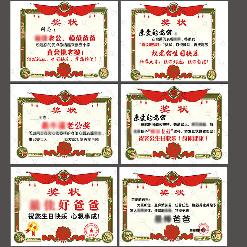父亲爸爸奖状糯米纸打印 老公妈妈退休奖状糖纸 生日蛋糕装饰定制