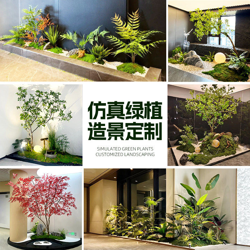 仿真绿植组合造景楼梯下商场热带假植物景观假树室内盆栽装饰摆件