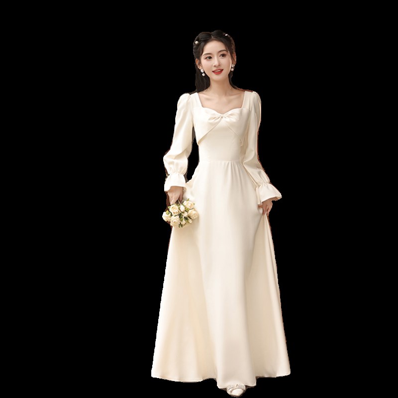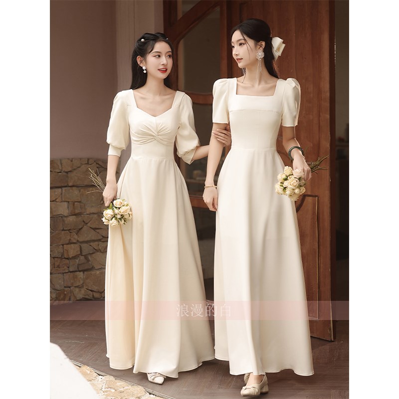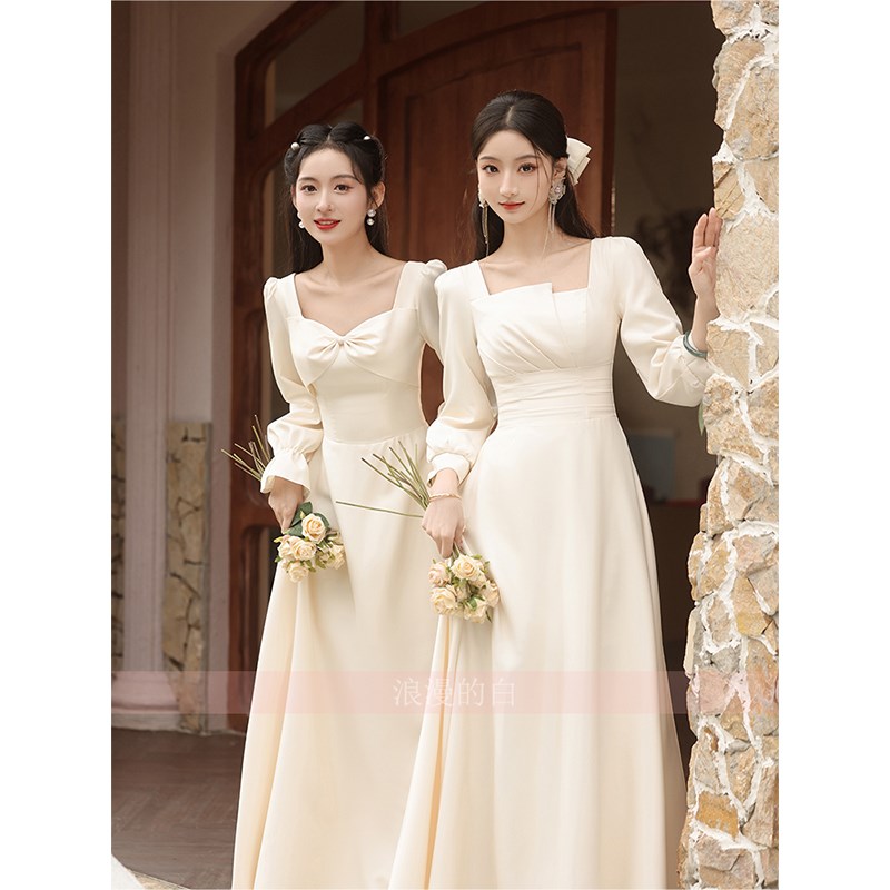 伴娘服长款2024新款香槟色气质姐妹裙毕业晚礼服平时可穿连衣裙女