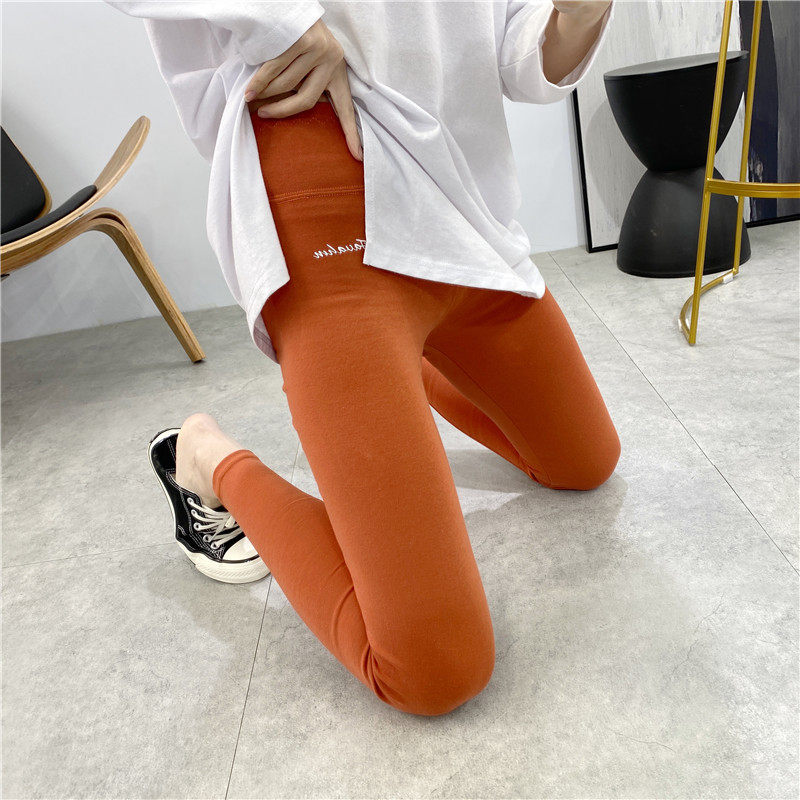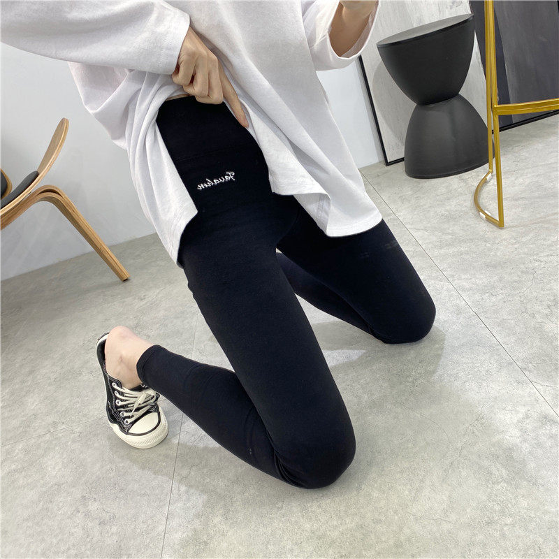 2024打底裤女高腰春秋棉弹力大码印花紧身裤黑色显瘦可外穿长裤