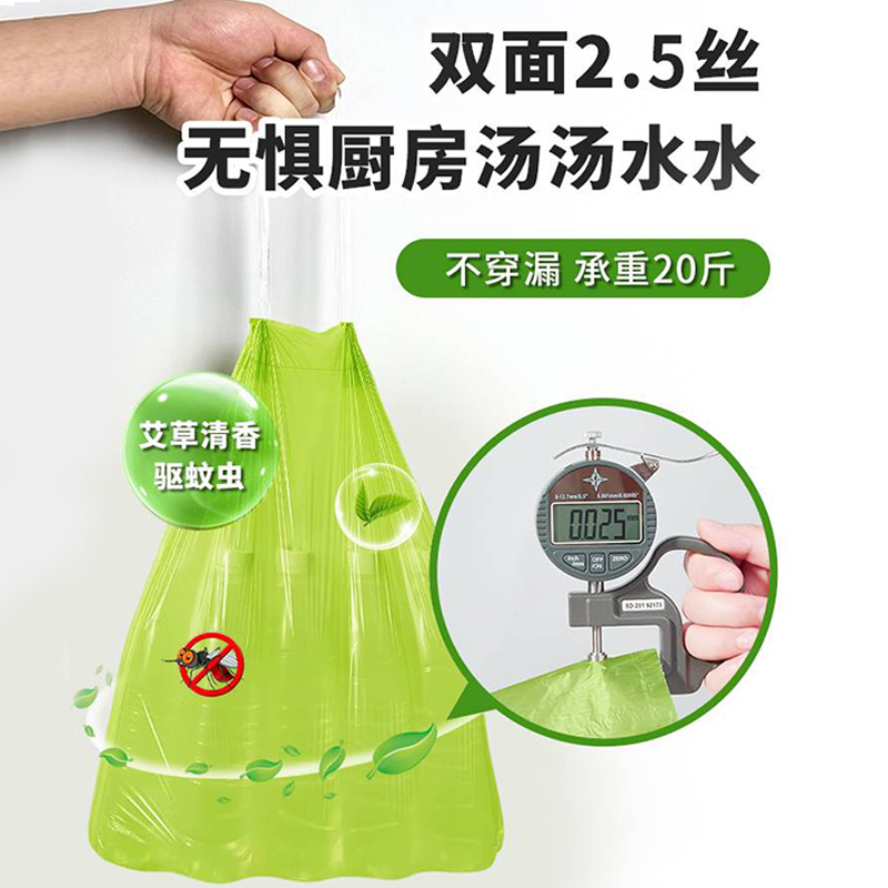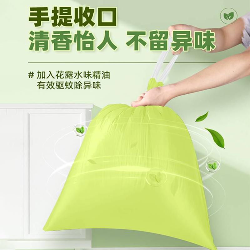 艾草抽绳垃圾袋家用加厚手提式实惠装厨房大号特超厚塑料袋子批发