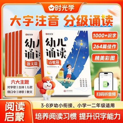 时光学幼儿诵读3-8岁幼小衔接小学一二年级提升识字启蒙培养阅读能力习惯 对字歌古诗儿歌绕口令诗歌散文幼小衔接认知互动故事书