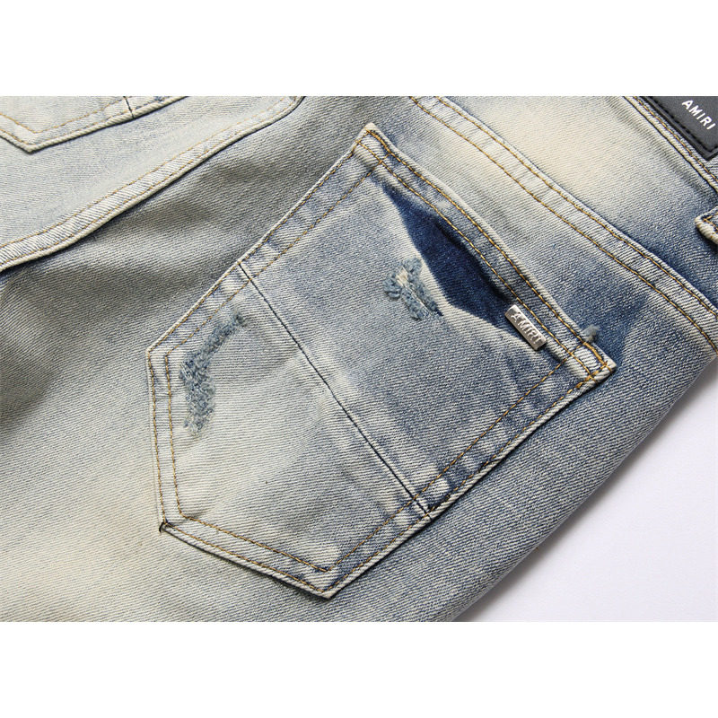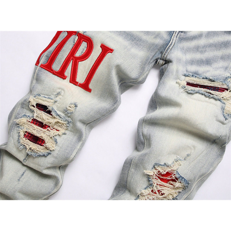 冬季版假破洞潮牌牛仔裤男绣花潮流修身款补丁复古乞丐个性长裤子