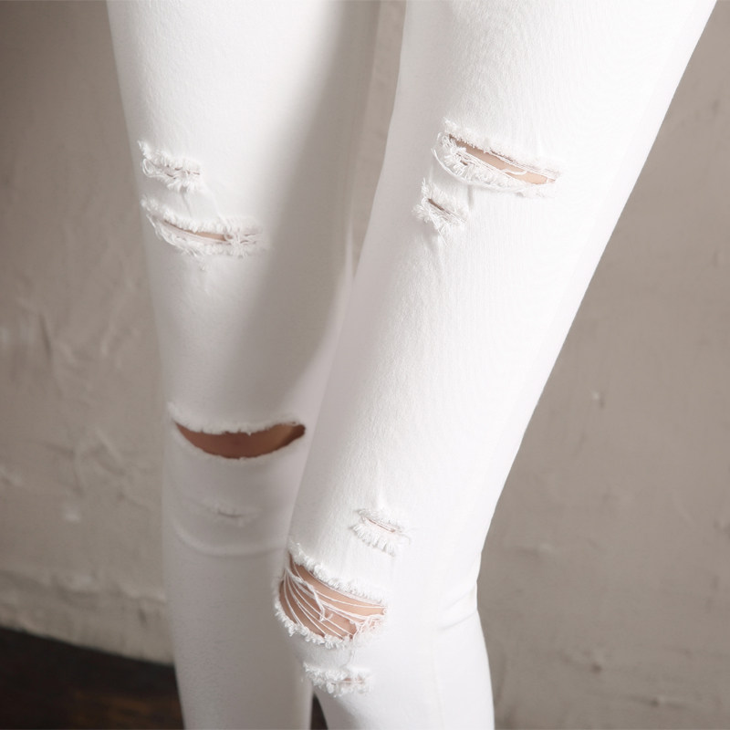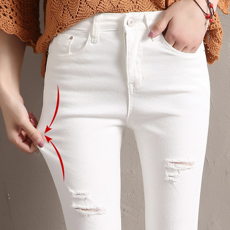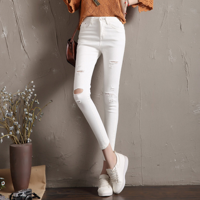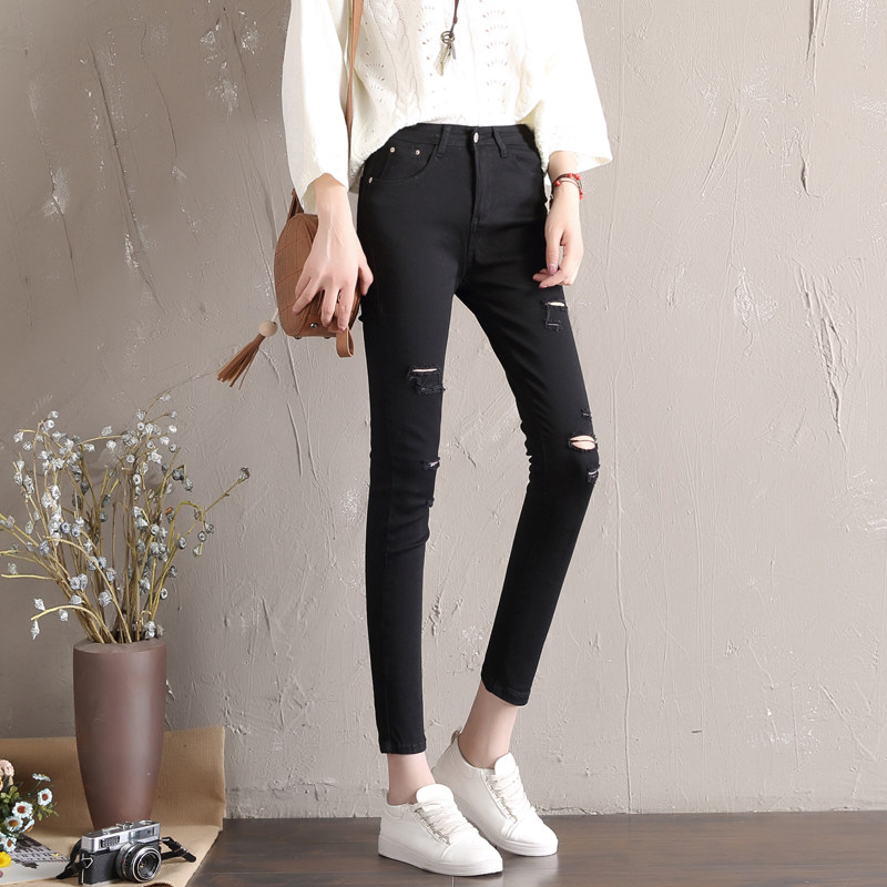 牛仔裤女九分裤2023春秋装新款割破洞夏修身小脚裤子9分百搭显瘦