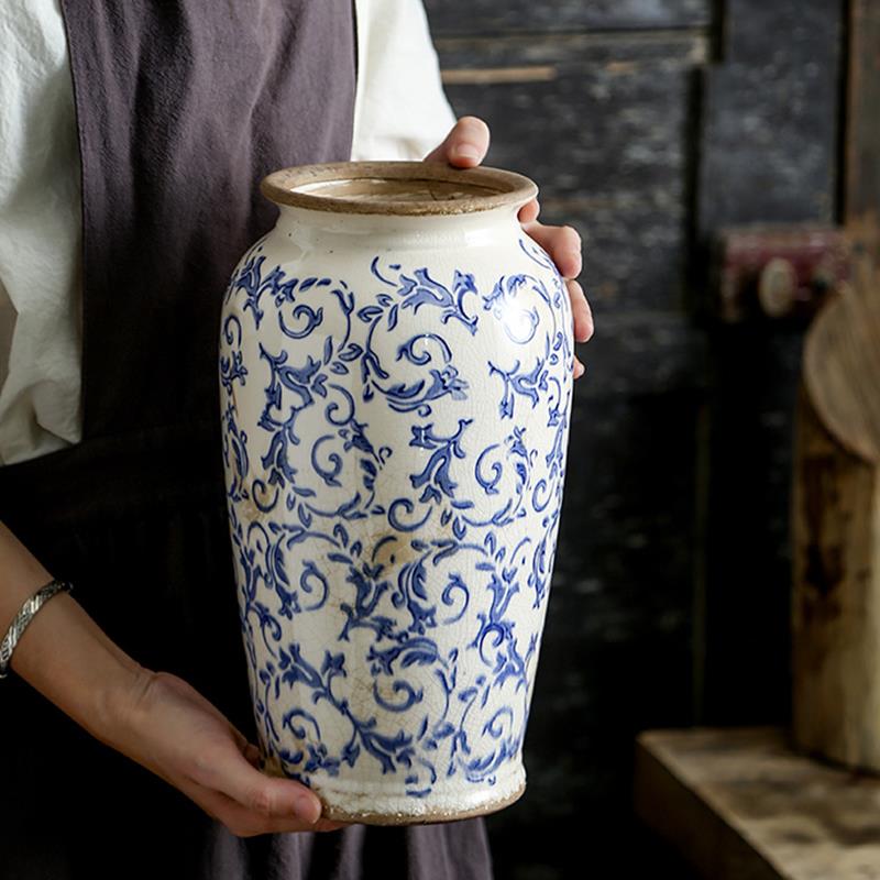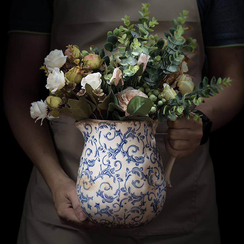 北欧田园风格陶瓷花瓶创意复古做旧家居园艺摆件餐桌干花水培器皿