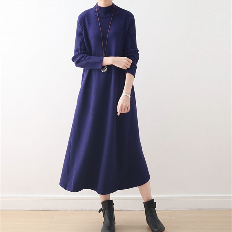 配大衣的针织连衣裙女秋冬宽松加厚复古毛衣裙过膝打底大码a字裙