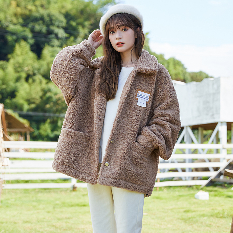 唐狮仿羊羔毛外套女秋冬新款短款外套女宽松韩版百搭冬季大衣潮