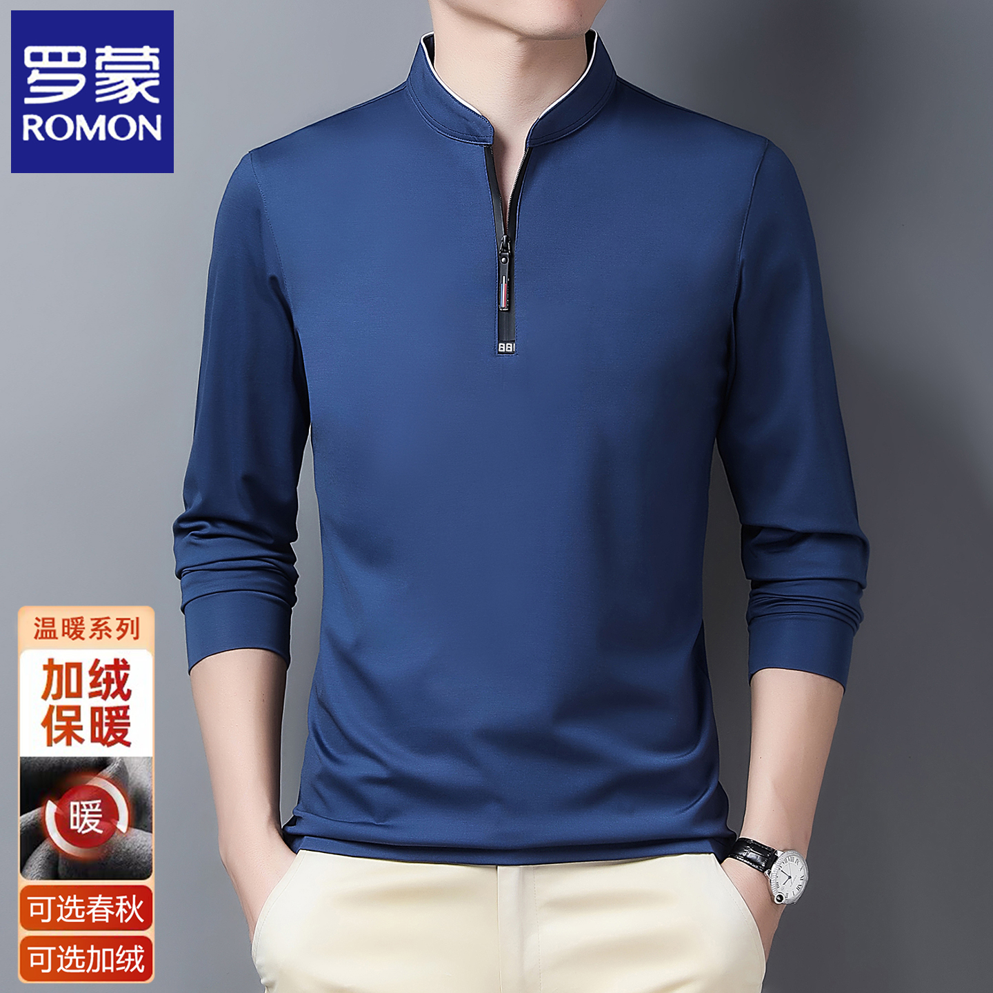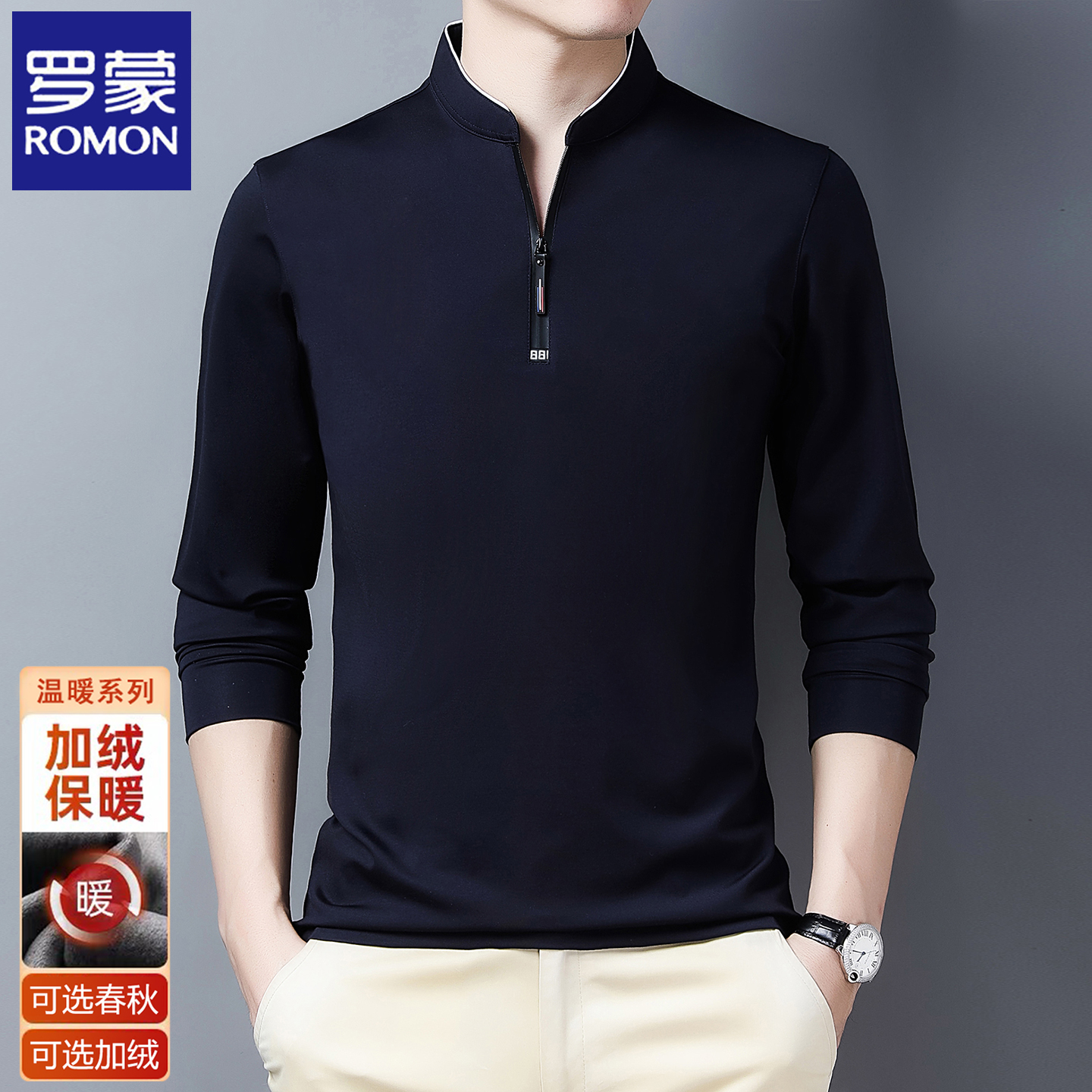 罗蒙长袖t恤男士立领半拉链休闲上衣服春秋季男装免烫黑色打底衫