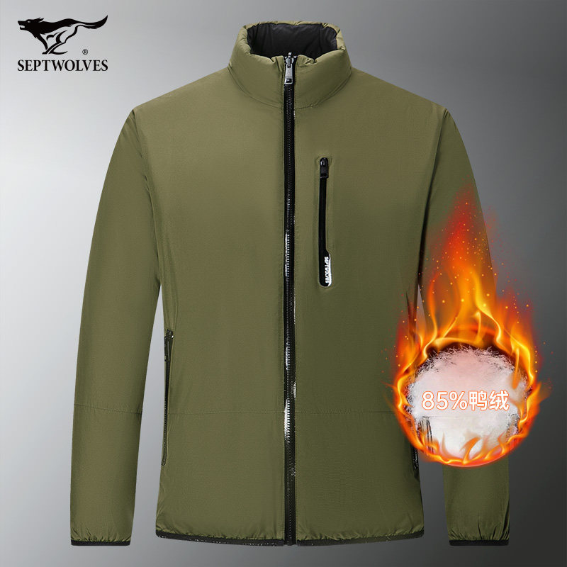 七匹狼男士羽绒服冬季2024年新款双面穿休闲翻领轻薄羽绒夹克外套