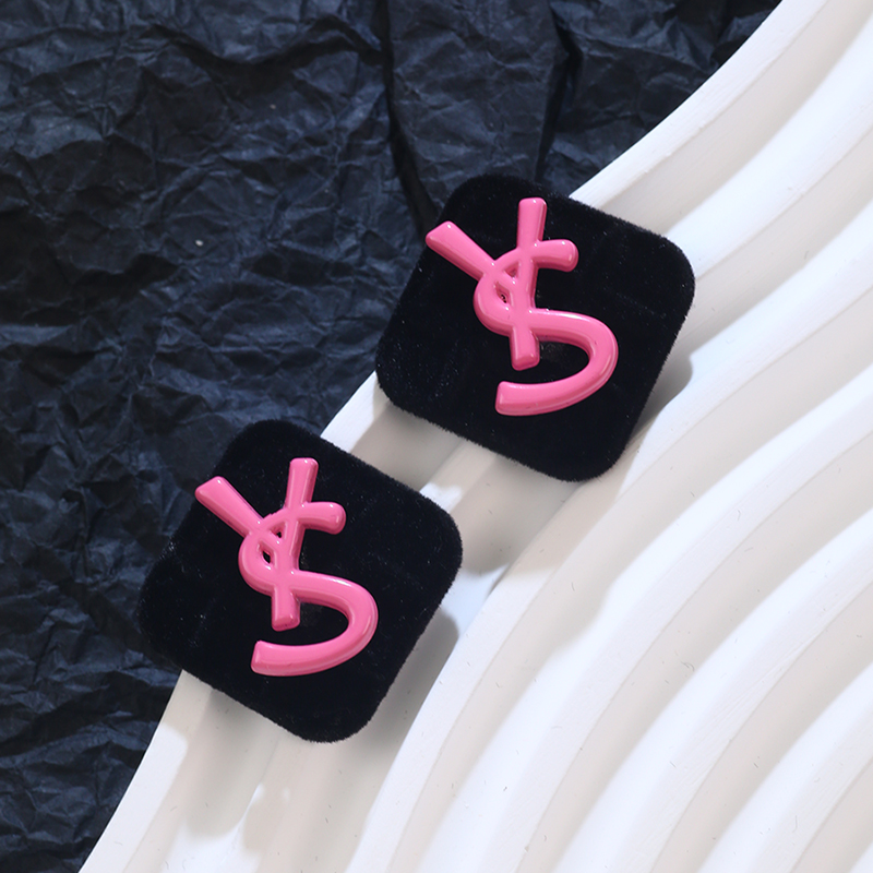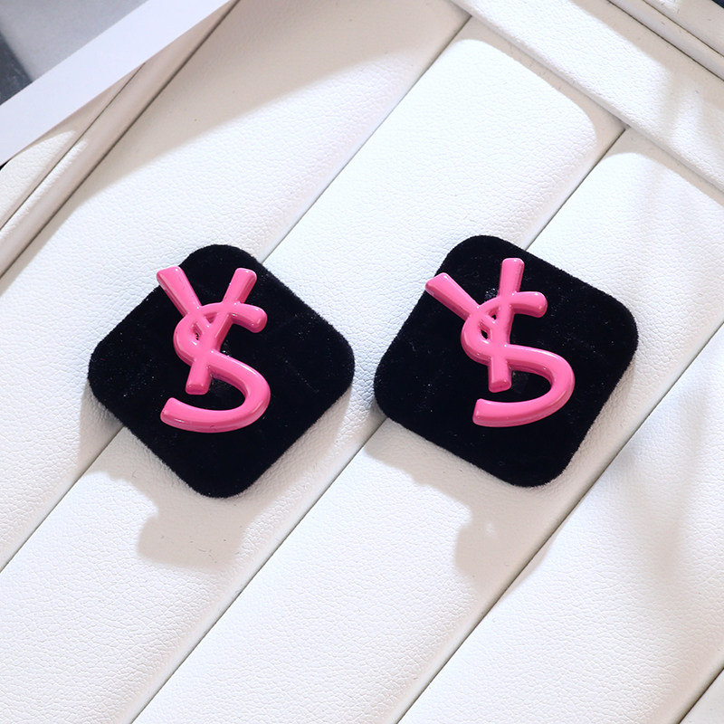 欧美风黑色方块字母耳环圆脸显瘦