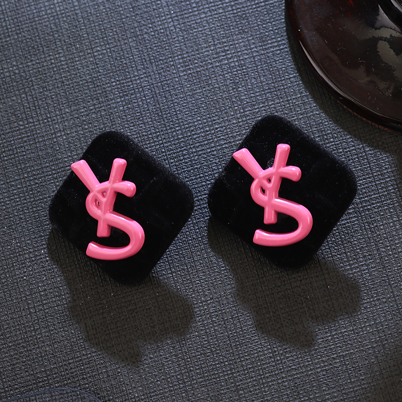 黑色方块丝绒大耳钉女小众设计感欧美个性夸张耳环高级感复古耳饰