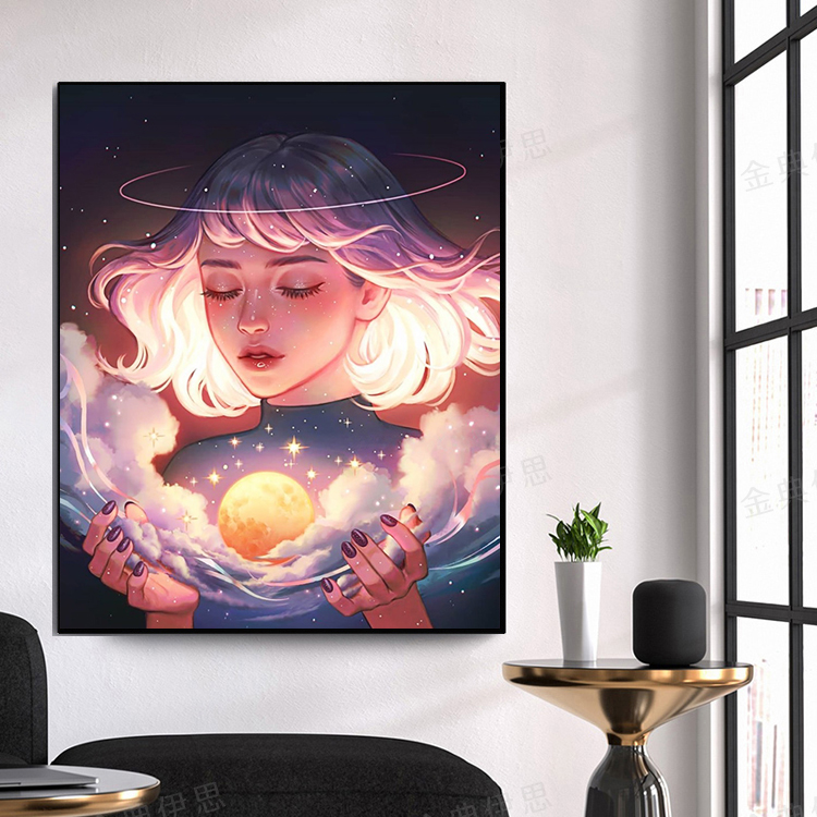 欧式人物钻石画月亮女孩卧室满钻