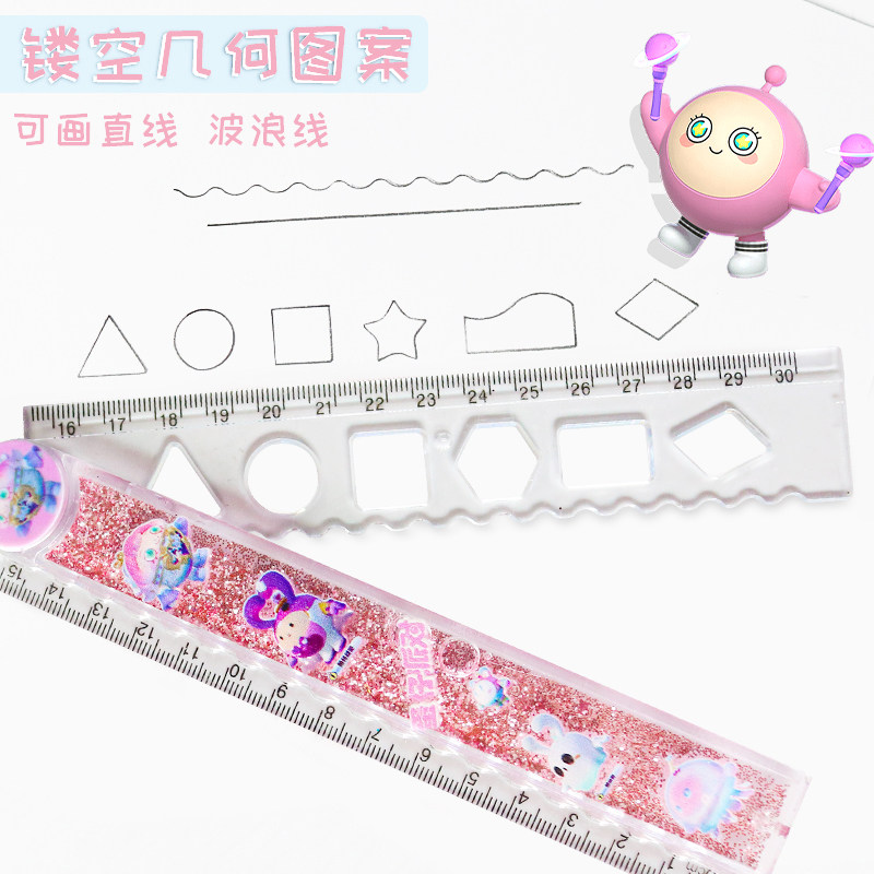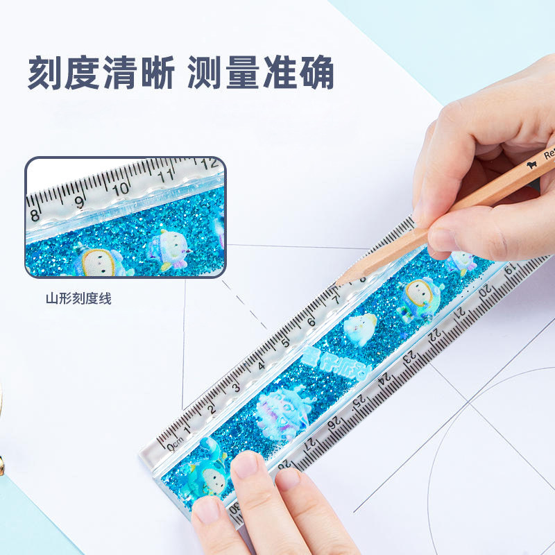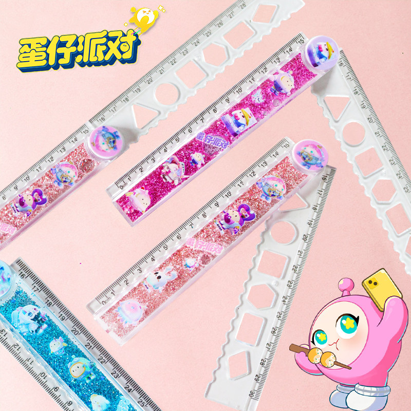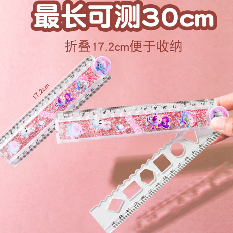 蛋仔派对折叠流沙小学生可爱高颜值卡通时尚学习用品尺子20cm一年级女童流沙尺子初中绘画格尺30cm对折款