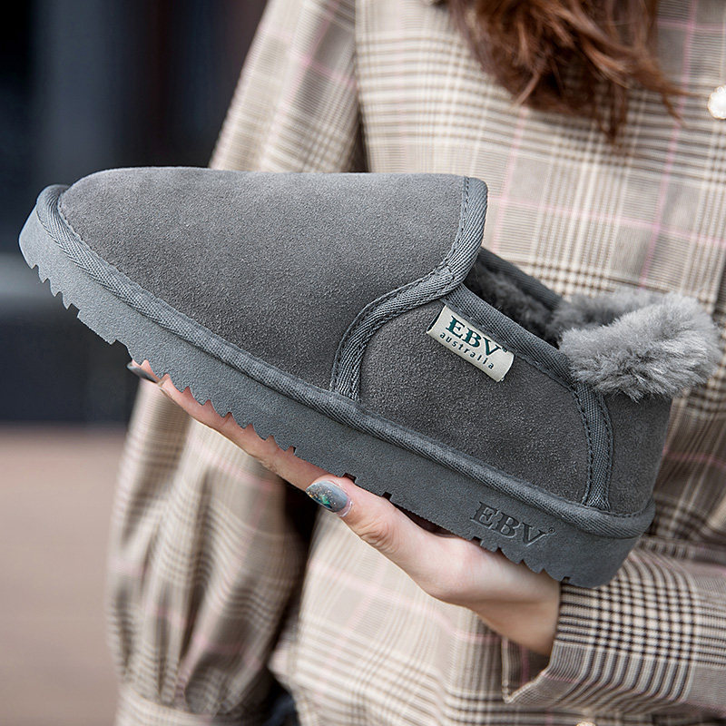 冬季新款真皮雪地靴女皮毛一体棉鞋加厚面包鞋女鞋加厚保暖一脚蹬
