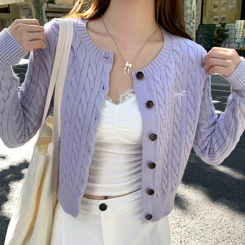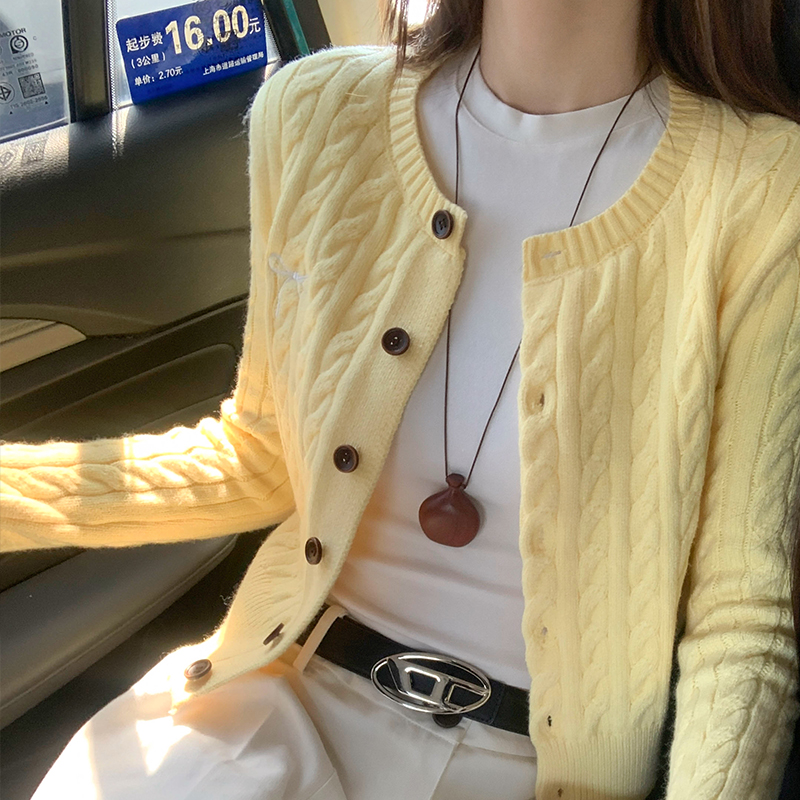 龙妹家蓝色针织开衫外套女短款2025年秋季新款小香风毛衣外搭上衣