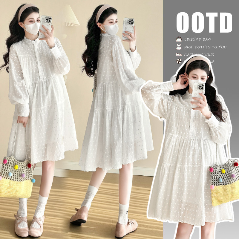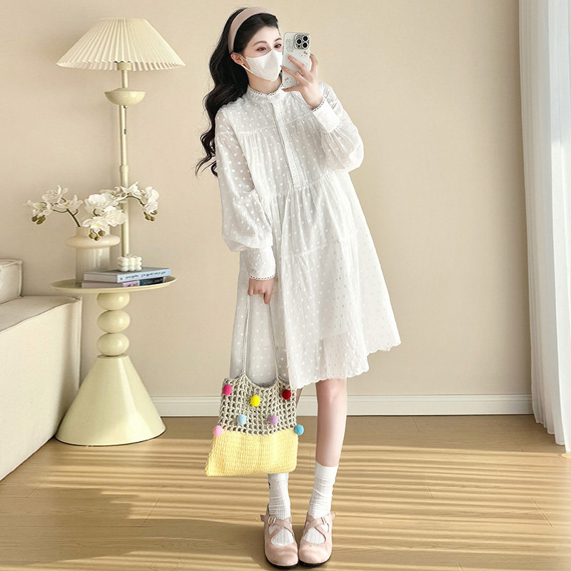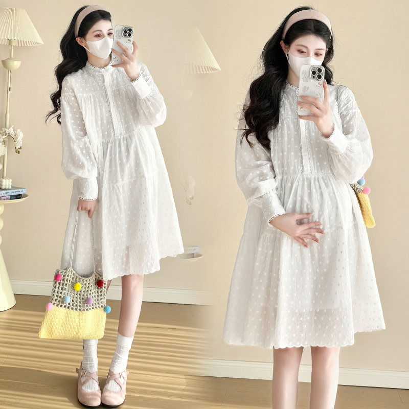 孕妇装春装法式浪漫绣花长袖连衣裙宽松大码休闲娃娃衫春季裙子春
