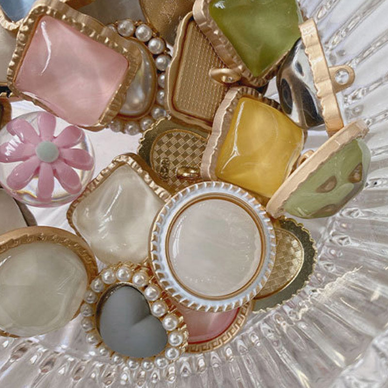 25mm晶莹剔透果冻冰块金属纽扣方形服装黄绿粉蓝紫色diy圆形扣子