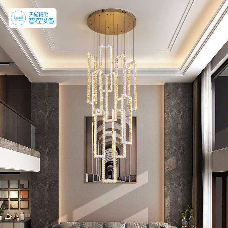楼梯间长吊灯别墅复式楼轻奢旋转楼梯灯酒店工程灯客厅水晶大吊灯