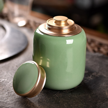 中式密封青瓷茶叶罐普洱陶瓷家用绿茶瓷罐包装茶仓大号茶罐存储罐