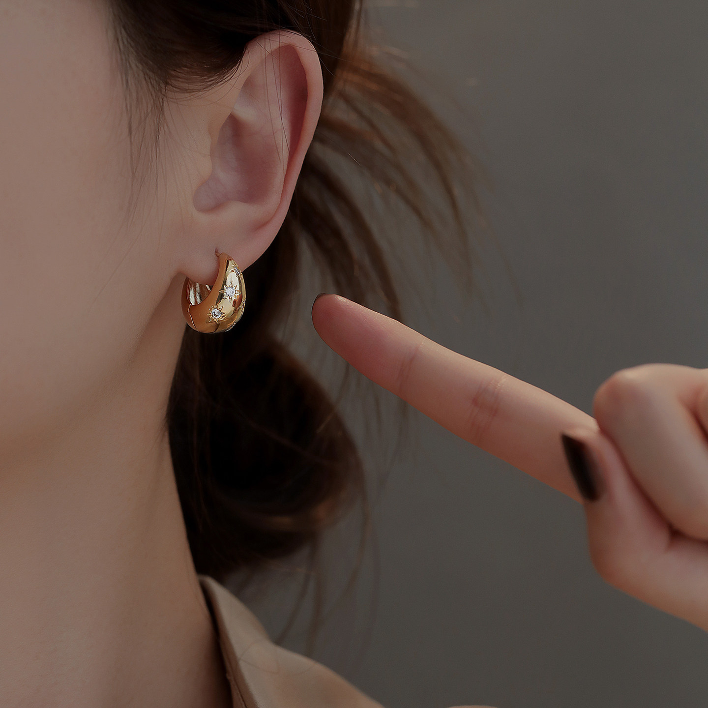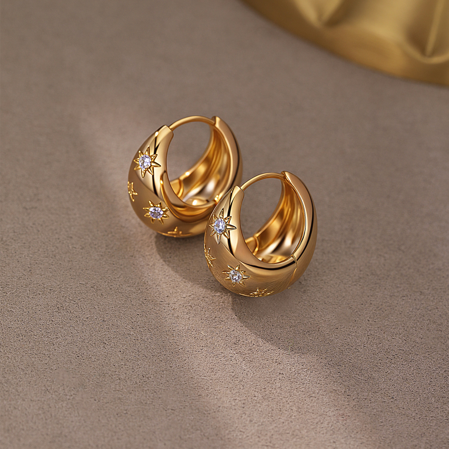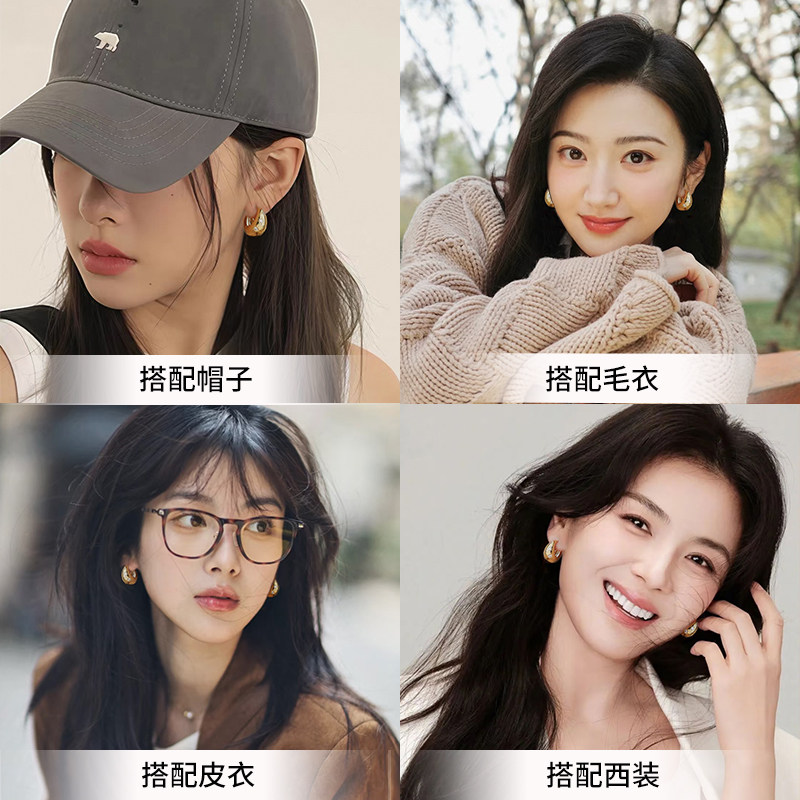 芒星锆石水滴耳环爆款金色耳圈2026新款轻奢耳扣明星同款秋冬耳饰
