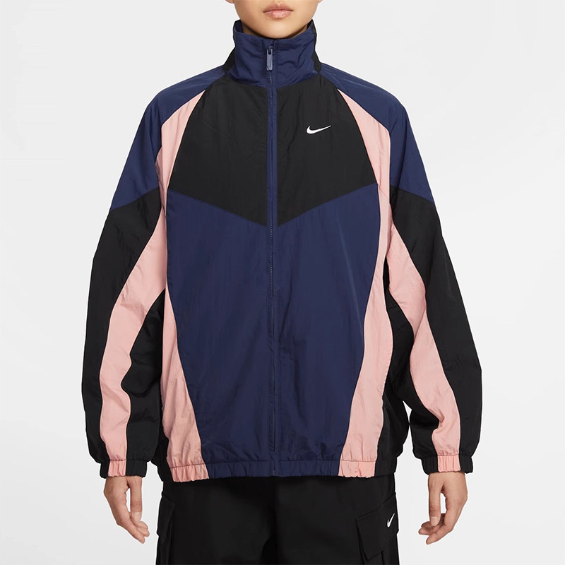 耐克女子外套秋新款休闲拼接透气立领茄克健身教练夹克HV4030-410