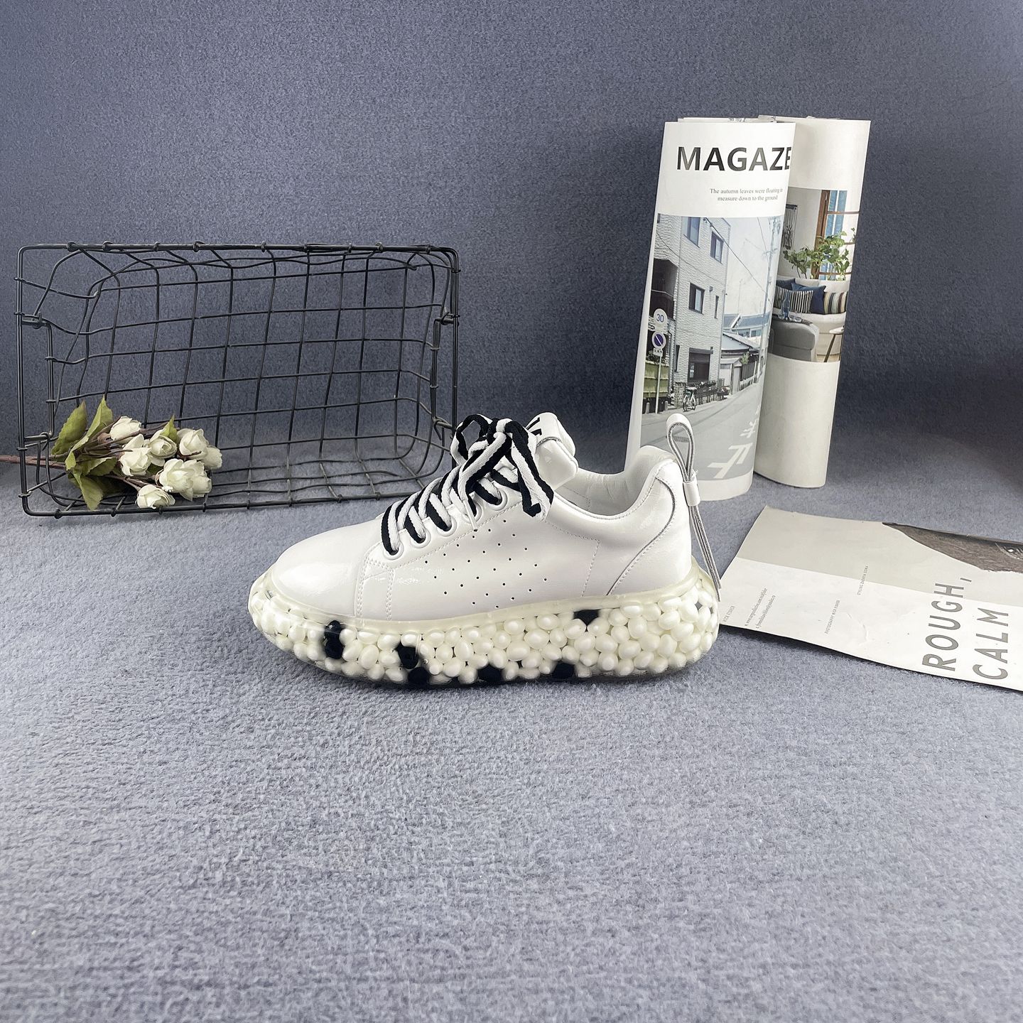 真皮专柜断码春秋新款牛漆皮时尚爆米花厚底轻软小白鞋女休闲鞋潮